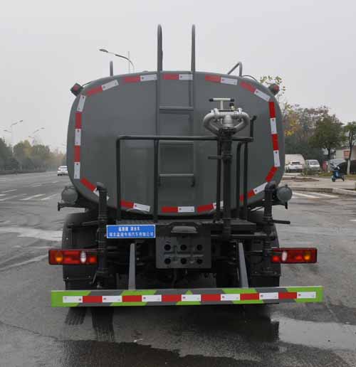 該車主要用于城鄉園林綠化,路面噴灑,除塵和降溫;主要裝置為水罐及噴灑裝置;隨底盤選裝駕駛室;罐體總容量:7.58立方米;罐體有效容積:7.22立方米;罐體外形尺寸(×長軸×短軸)(mm):4200×2000×1310;ABS型號/廠家:ABS型號及生產廠家為:3631010-C2000/東科克諾爾商用車制動系統(十堰)有限公司,J ABS/焦作博瑞克控制技術有限公司;側、后防護材料均為:Q235碳鋼,連接方式均為:螺栓連接,后部防護截面尺寸(mm):120×50,后部防護離地高度(mm):450.選裝噴灑裝置。選裝噴灑裝置樣式,選裝后部箭頭燈,選裝后部弧形噴灑裝置,選裝水炮支架位置,選裝后部樣式,選裝自動球閥安裝位置,選裝自動炮裝置樣式,前伸500mm,整車長度為7700(mm)