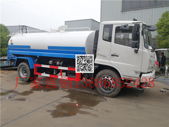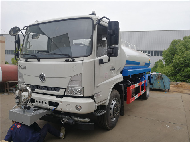 灑水車前裝有鴨嘴形噴嘴或圓錐形沖嘴,后面裝有圓柱形灑水噴嘴或蓮蓬頭噴嘴,后部有工作平臺,裝配有水炮。后還可裝8個噴嘴。
