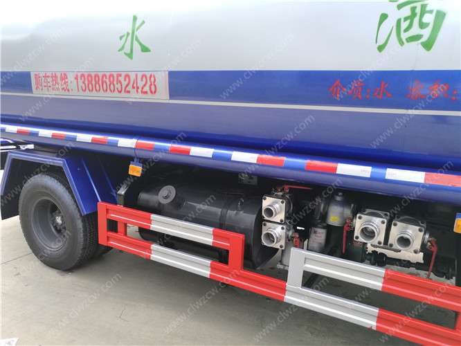 3、東風多利卡D9熱水配送車——玉柴200馬力、康明斯230馬力發動機,罐體保溫可裝10-13噸水;