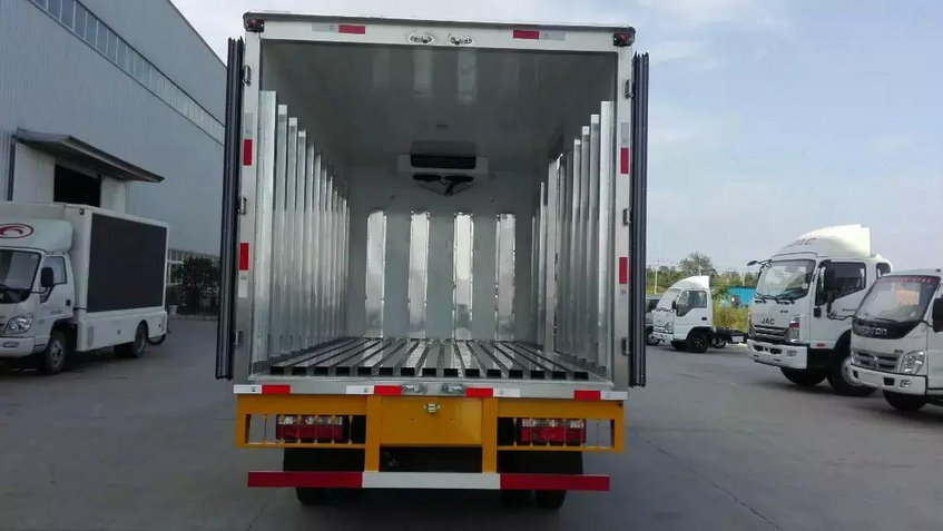 冷藏車廂體:采用國標(biāo)A級聚氨酯保溫材料,厚度為8厘米,廂體內(nèi)外采用玻璃鋼材質(zhì)全包裹。不銹鋼鎖件。包角、包邊鋁合金型材。底盤采用高強度花紋鋁板定制。可選裝肉鉤導(dǎo)軌,和底部通風(fēng)槽。