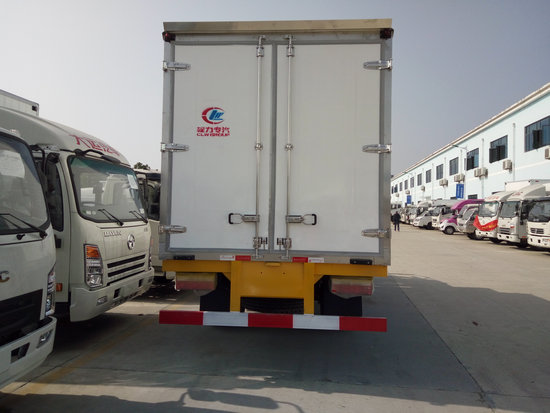 冷藏車廂體:采用國標A級聚氨酯保溫材料,厚度為8厘米,廂體內外采用玻璃鋼材質全包裹。不銹鋼鎖件。包角、包邊鋁合金型材。底盤采用高強度花紋鋁板定制。可選裝肉鉤導軌,和底部通風槽