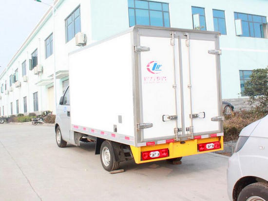 冷藏車廂體:采用國標A級聚氨酯保溫材料,厚度為8厘米,廂體內外采用玻璃鋼材質全包裹。不銹鋼鎖件。包角、包邊鋁合金型材。底盤采用高強度花紋鋁板定制。可選裝肉鉤導軌,和底部通風槽