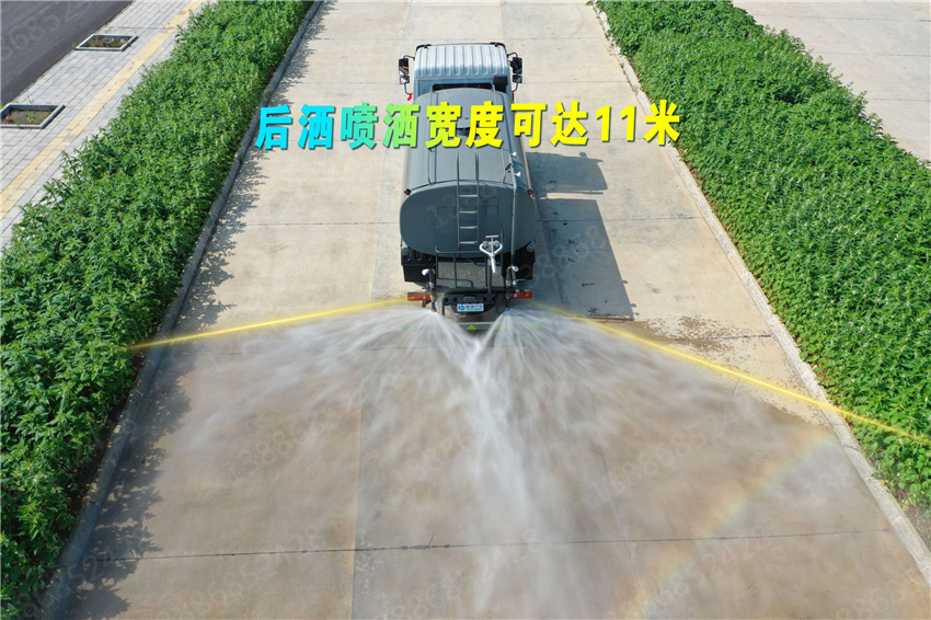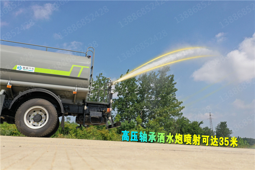 東風華神10方抑塵車專用功能配置:罐體有效容積9噸,采用武鋼4mm 優質碳鋼一次卷壓無縫成型,專用部分配專用灑水泵,帶前沖、后灑、側噴、后工作平臺及灑水高壓炮。配消防接口、自流閥,2根與罐體等長輸水管,水位計,1個爬梯,兩側及后杠。灑水泵自吸高度為7米,出水量為60立方米每小時,灑水寬度大于14米,后工作平臺水炮可調成直沖狀、大雨、中雨、小雨、毛毛雨,直沖射程25米左右,霧狀射程15米左右。(可選配:錳鋼罐體、加粗管道、駕駛室一鍵操作、氣動控制、罐體防腐、高端灑水泵)