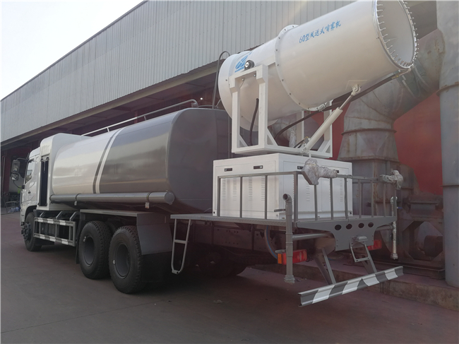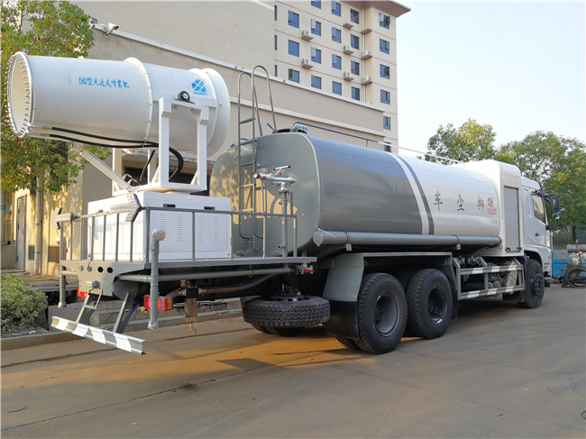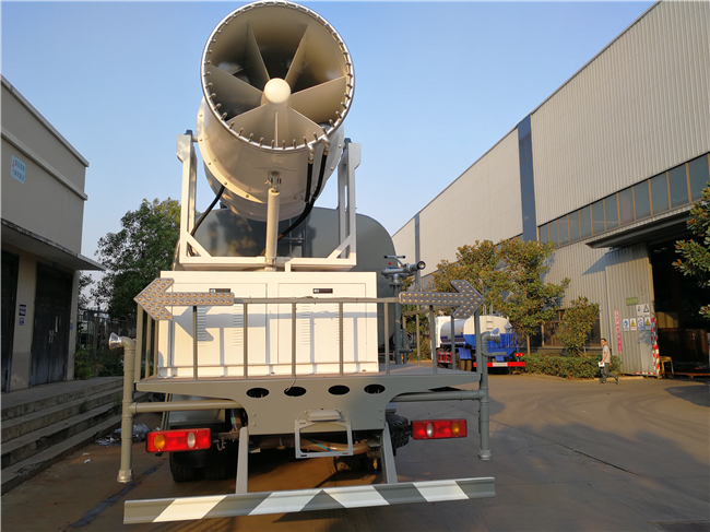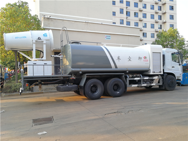 專用裝置為抑塵霧炮,用于城市抑塵.整車長(zhǎng)/軸距/后懸對(duì)應(yīng)關(guān)系為(mm):10630/4350+1350/3490;10630/4750+1350/3090;11880/5400+1350/3690;11880/5700+1350/3390;11880/5900+1350/3190;防護(hù)材料:Q235A碳鋼,連接方式:左右側(cè)面采用焊接連接,后下部防護(hù)采用螺栓連接,后部防護(hù)斷面尺寸(mm):120×50,后部防護(hù)離地高度(mm):500.ABS型號(hào)/生成廠家:3631010-C2000/東科克諾爾商用車制動(dòng)系統(tǒng)(十堰)有限公司;選裝霧炮型號(hào):WF-60/WF-80/WF-100所對(duì)應(yīng)的整備質(zhì)量分別為:12300kg/13250kg/14000kg。隨底盤選裝駕駛室。選裝外形圖片。