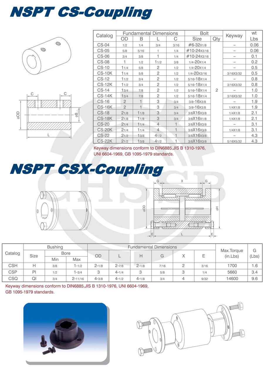 產(chǎn)品范圍: 美標(biāo):(CS) 英制尺寸產(chǎn)品(適用于美標(biāo)市場) CS型聯(lián)軸器